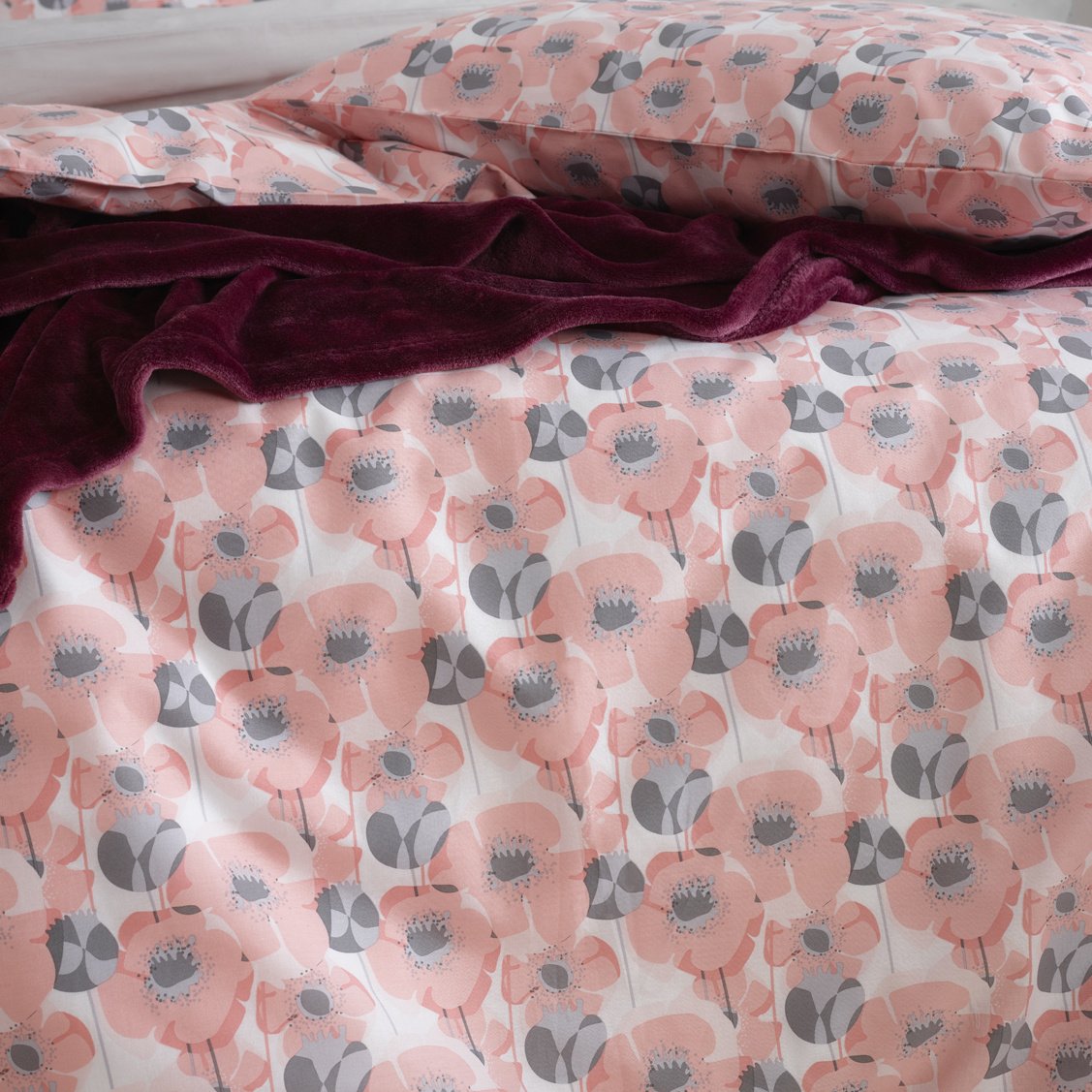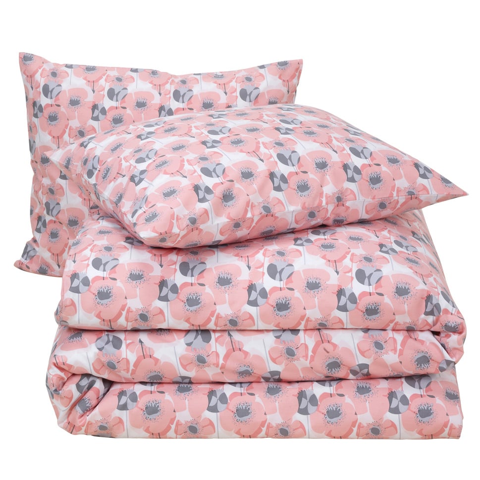 Dit stijlvolle hotelmaat dekbedovertrek uit de Odil-collectie van Moodit brengt direct warmte en karakter in de slaapkamer. Het dessin bestaat uit een mooi bloemenpatroon in een roze-tint op een witte achtergrond, wat zorgt voor een levendige maar gebalanceerde uitstraling. De bijpassende kussenslopen sluiten naadloos aan bij het ontwerp en maakt het geheel compleet.