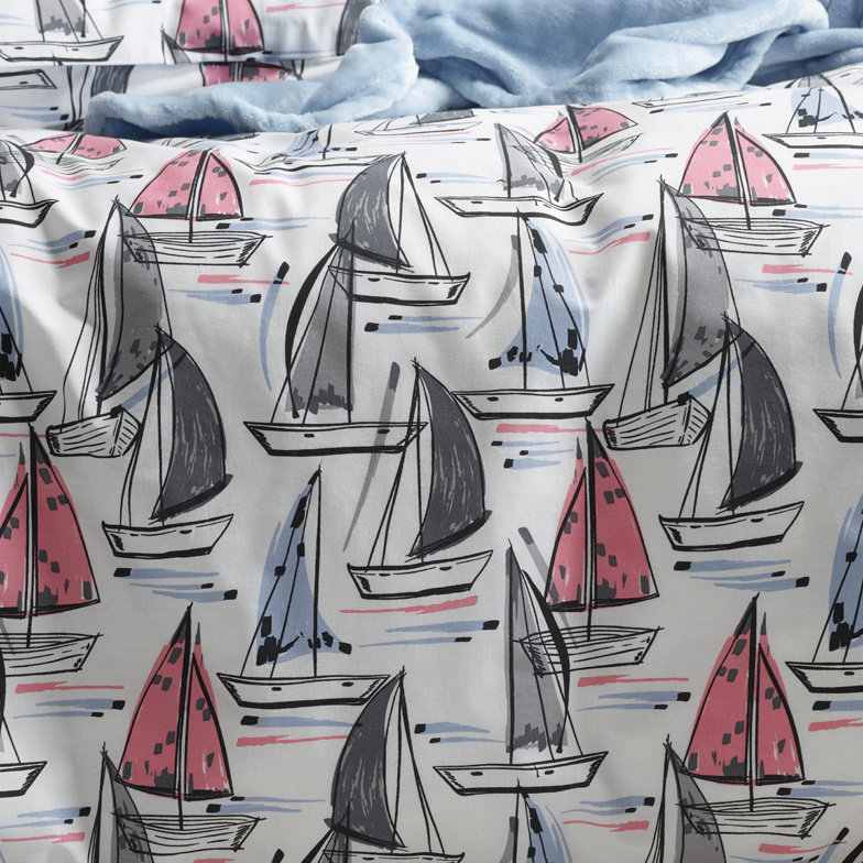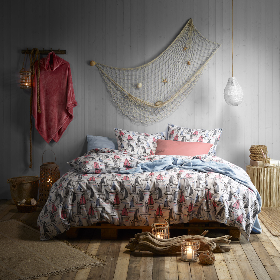 Dit stijlvolle 2-persoons dekbedovertrek uit de Odil-collectie van Moodit brengt direct warmte en karakter in de slaapkamer. Het dessin bestaat uit een speels patroon van diverse zeilboten op een frisse witte achtergrond, wat zorgt voor een levendige maar gebalanceerde uitstraling. De bijpassende kussenslopen sluiten naadloos aan bij het ontwerp en maakt het geheel compleet.