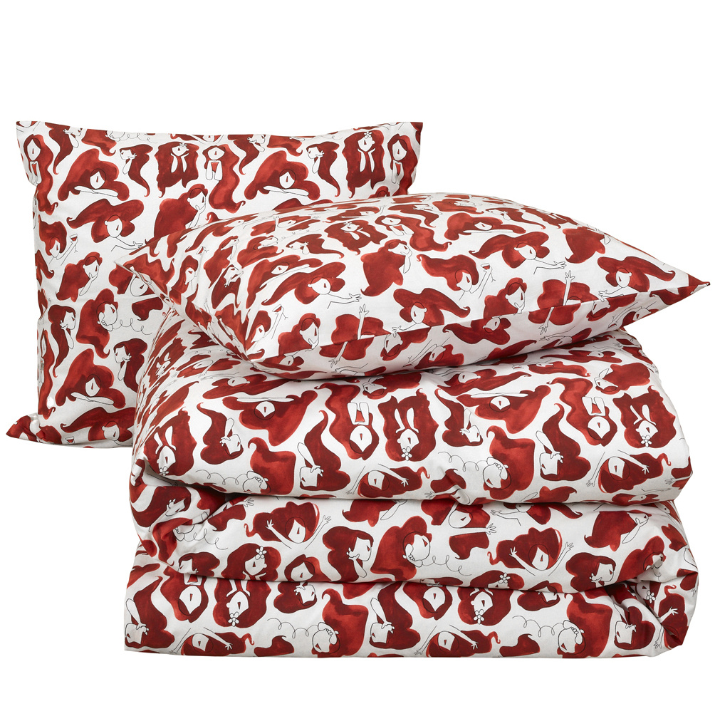 Dit stijlvolle 2-persoons dekbedovertrek uit de Odil-collectie van Moodit brengt direct warmte en karakter in de slaapkamer. De print bestaat uit een herhalend patroon van elegante, illustratieve vrouwenfiguren met golvend rood haar, elk in een andere houding en stemming. De warme roestrode tinten steken prachtig af tegen de frisse witte achtergrond, waardoor het dessin zowel opvallend als luchtig blijft. De bijpassende kussenslopen sluiten naadloos aan bij het ontwerp en maakt het geheel compleet.