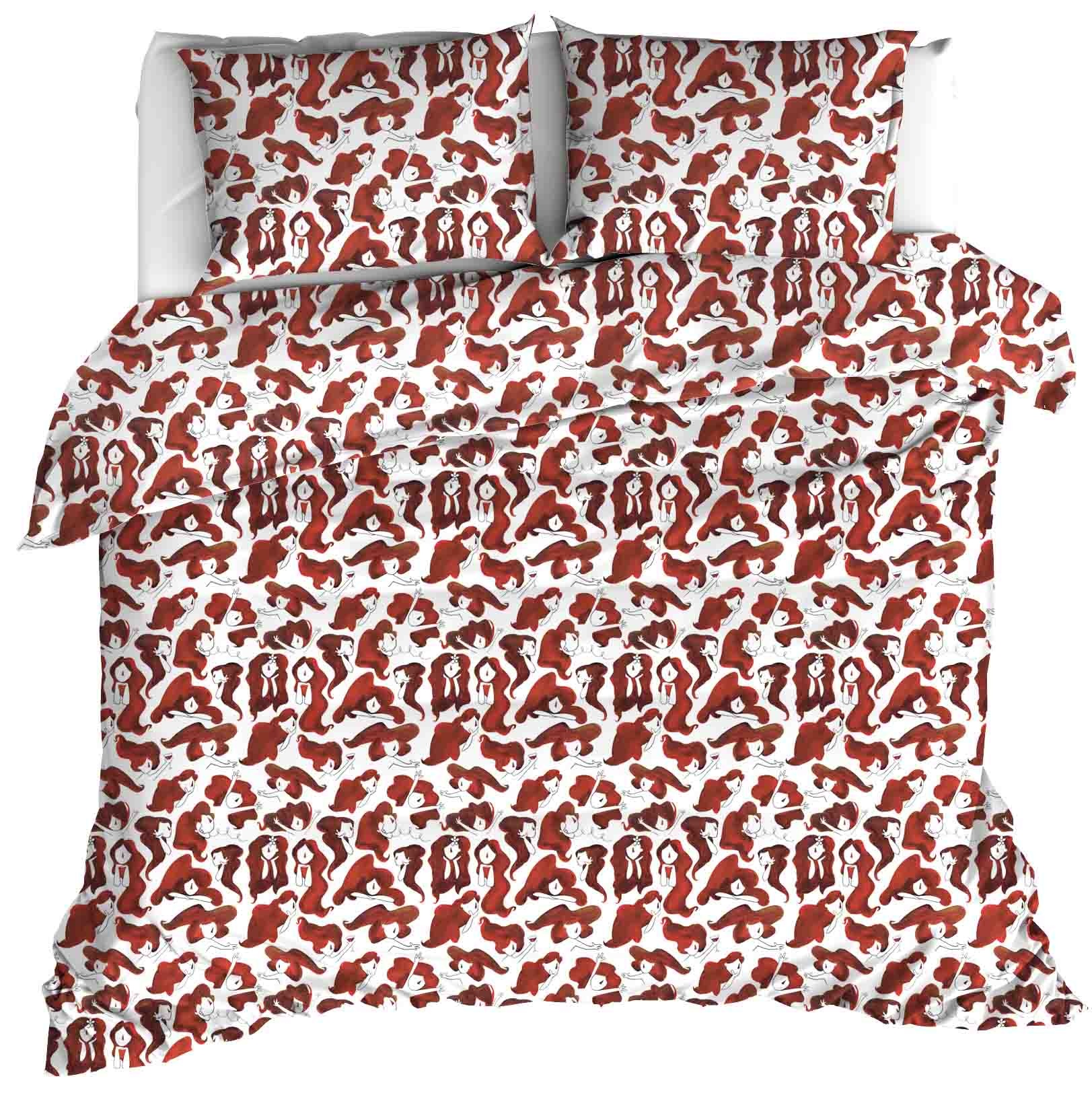 Dit stijlvolle lits jumeaux dekbedovertrek uit de Odil-collectie van Moodit brengt direct warmte en karakter in de slaapkamer. Het dessin bestaat uit een uit een herhalend patroon van elegante, illustratieve vrouwenfiguren met golvend rood haar, elk in een andere houding en stemming. De bijpassende kussenslopen sluiten naadloos aan bij het ontwerp en maakt het geheel compleet.