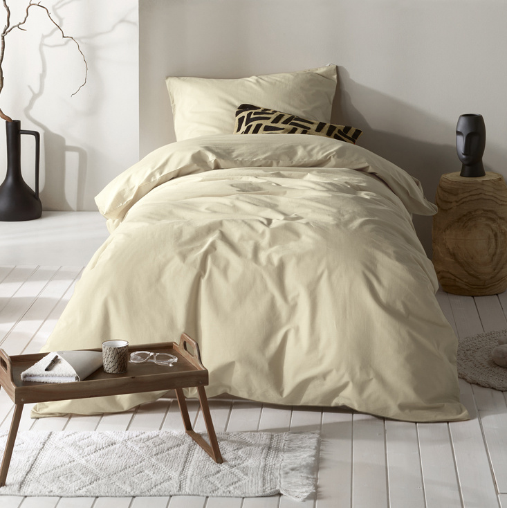 Moodit Dekbedovertrek, Basil Sand. Een geweldig eenpersoons dekbedovertrek. Een unicolor overtrek, wat je terug naar de basis brengt. Dit beddengoed brengt zowel eenvoud als rust in de slaapkamer. Gemaakt van 100% katoen en reactief geverfd. Wat inhoudt dat deze set geschikt is voor intensief gebruik en een uitstekend kleurbehoud heeft. Maximum bescherming voor licht en wassen. Mix and match met andere kleuren uit deze serie of de Odil serie en zet de sfeer naar jouw hand, altijd en overal!