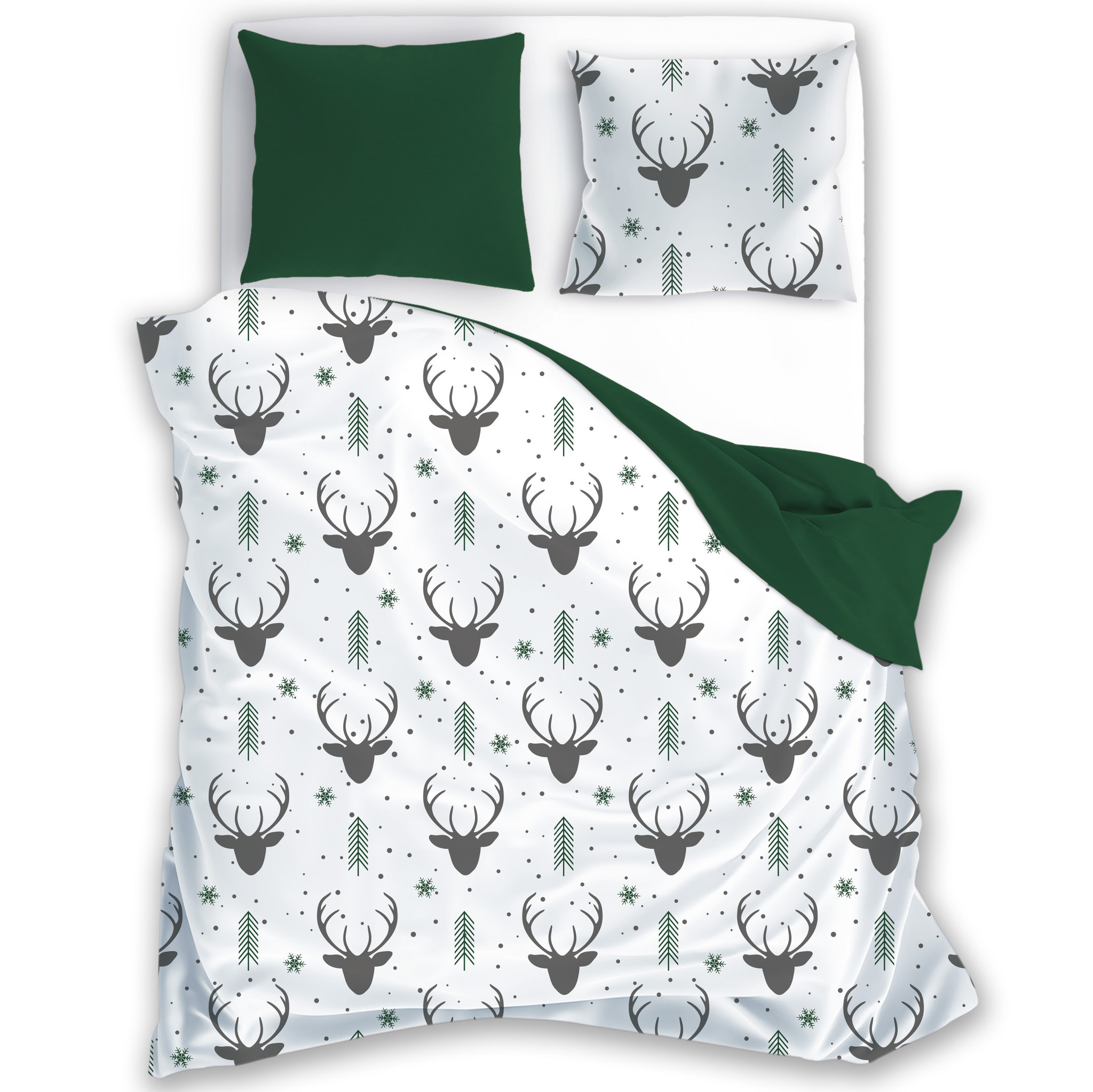 Faro Dekbedovertrek, Scandic. Kom in winterse sferen met dit mooie katoenen dekbedovertrek. De overtrek heeft een patroon van rendieren in een kerstsfeer. Ideaal voor de feestdagen! Zowel de overtrek als het, extra grote, kussensloop zijn dubbelzijdig bedrukt waardoor er leuke mogelijkheden zijn met opmaken en de set zelfs omkeerbaar is. Een waanzinnig leuk cadeau voor de aankomende kerst of voor een liefhebber van een Scandinavische, winterse stijl.