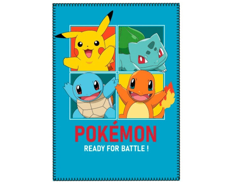 Pokémon Fleeceplaid, Ready for Battle. Pikachu, Bulbasaur, Charmander, Squirtle zijn klaar voor hun gevecht! En jij? Met dit plaid blijf jij in elk geval lekker warm, terwijl je je Pokémon game aan het spelen bent of je Pokémon kaarten aan het tellen. Het fleeceplaid is een leuke aanwinst voor elke stoere kinderkamer. Ook leuk om cadeau te geven aan een echte fan van Pokemon!