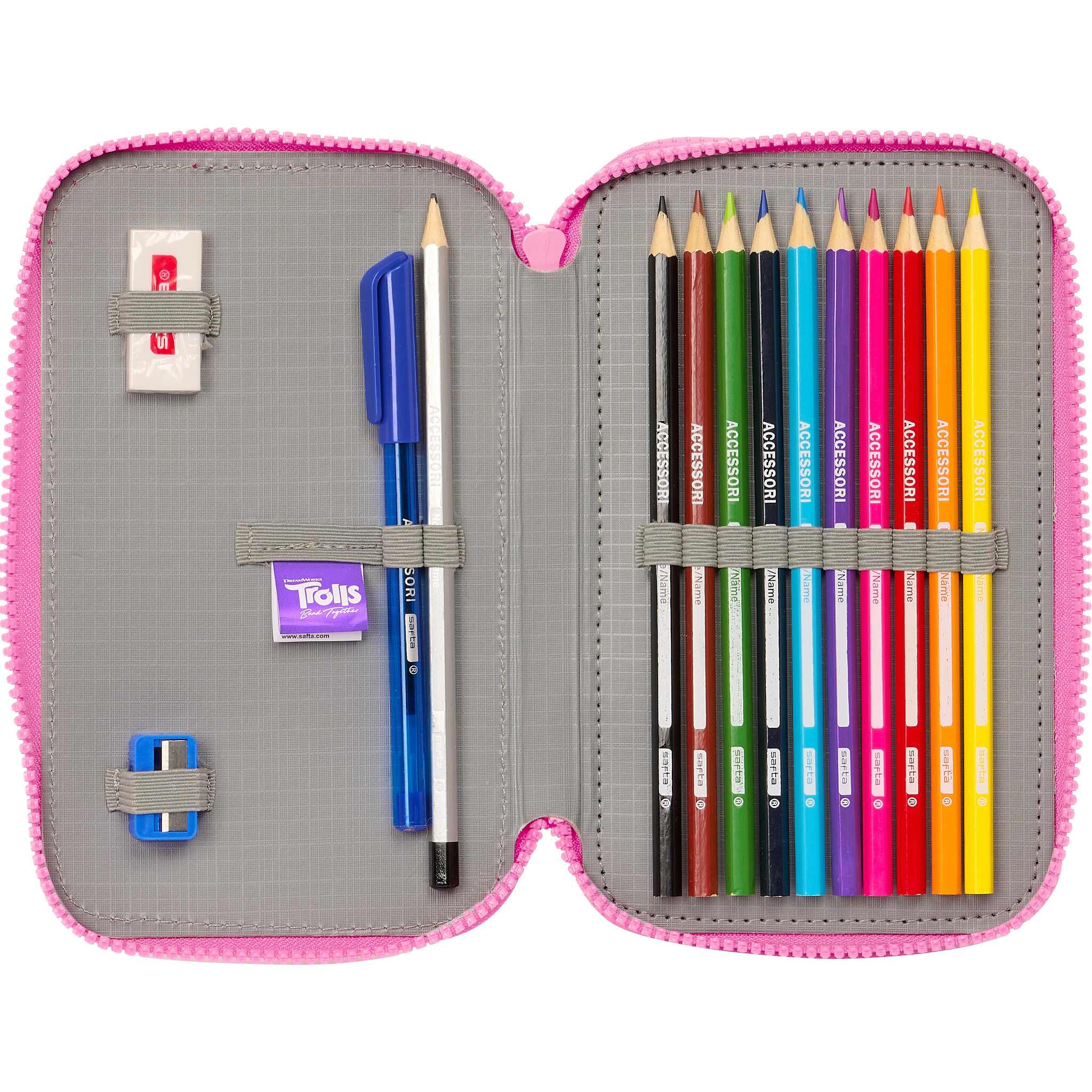 Trolls Gevuld Etui, Band Together. Poppy en haar gekke zus Viva vormen samen de band Trolls Band Together. Ze dansen er op los! Deze leuke, gevulde etui zorgt ervoor dat jij de mooiste tekencreaties kan maken met hulp van de vele kleurpotloden en viltstiften. De etui is tevens voorzien van schetspotlood, puntenslijper en een balpen. Door het compacte formaat is de etui zeer geschikt voor gebruik op school, thuis of op vakantie! Het leuke dessin van bloemetjes, maakt de etui helemaal af! Ook leuk om cadeau te geven aan een echte Trolls fan voor een verjaardag of de feestdagen.