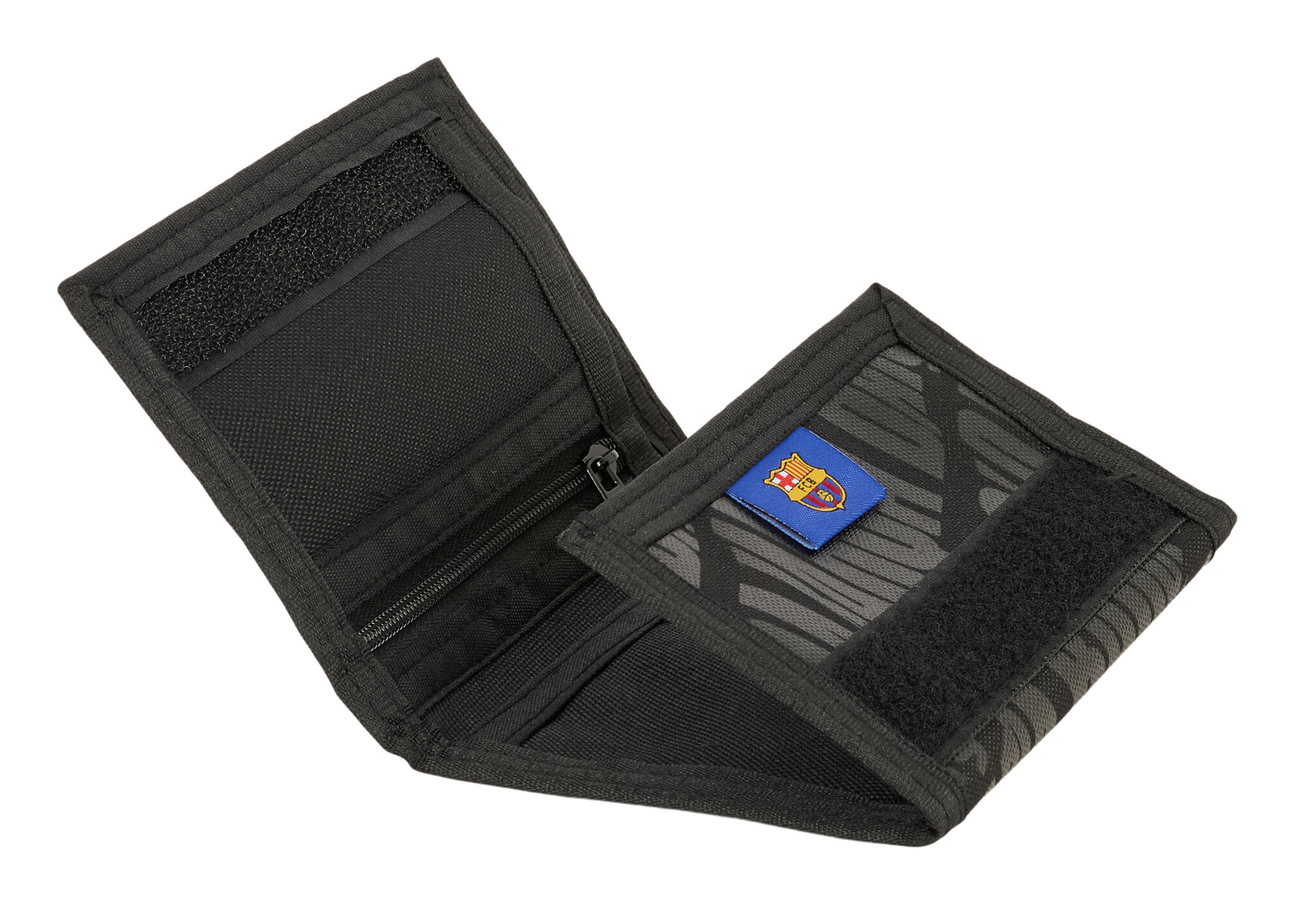 Neem je favoriete voetbalclub altijd met je mee met deze stoere FC Barcelona portemonnee! De portemonnee is zwart, voorzien van het iconische Barça-logo en sluit met stevig klittenband. Binnenin vind je diverse vakjes voor pasjes, briefgeld en muntgeld. Met een handig formaat van 12,5 x 9,5 cm past hij makkelijk in je zak of tas. Perfect voor elke voetbalfan die zijn spullen georganiseerd en veilig wil bewaren. Droom weg bij de skills van spelers als Robert Lewandowski, Pedri en Frenkie de Jong met deze gave portemonnee. Of je nu onderweg bent naar school, een potje voetbal met vrienden of een dagje uit; deze portemonnee laat jouw clubtrots altijd zien. Een geweldig cadeau voor verjaardagen, feestdagen of als verrassing voor een echte voetbal liefhebber!