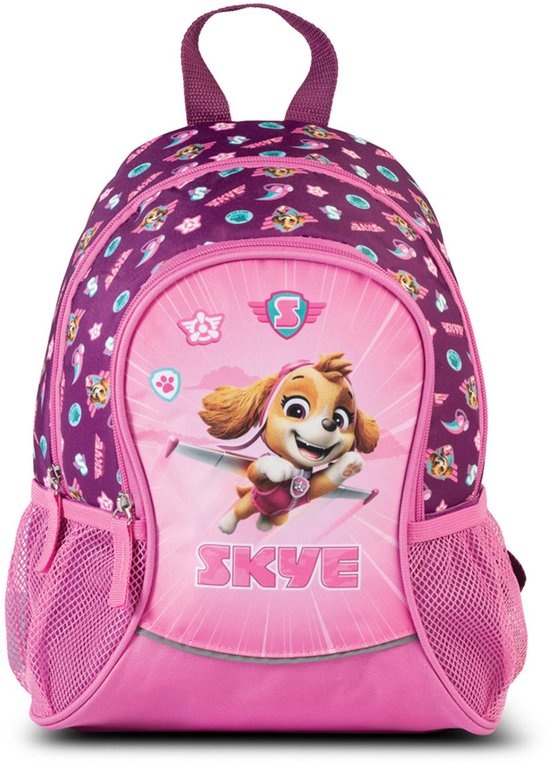 Stoere Paw Patrol peuterrugzak van de heldenpup, Skye. Deze stoere hond is bekend van de animatie-serie PAW Patrol. Waarbij zij, samen met zijn medepups, de gekste avonturen beleefd! Deze fijne rugtas beschikt over twee ruime vakken met ritssluiting en twee open zijvakken voor, bijvoorbeeld, een drinkbeker. Ideaal voor de eerste jaren op school, de kinderdagopvang of een dagje weg! Een leuk cadeau-idee voor het back-to-school seizoen of een verjaardag. Welke fan maak jij hier blij mee?