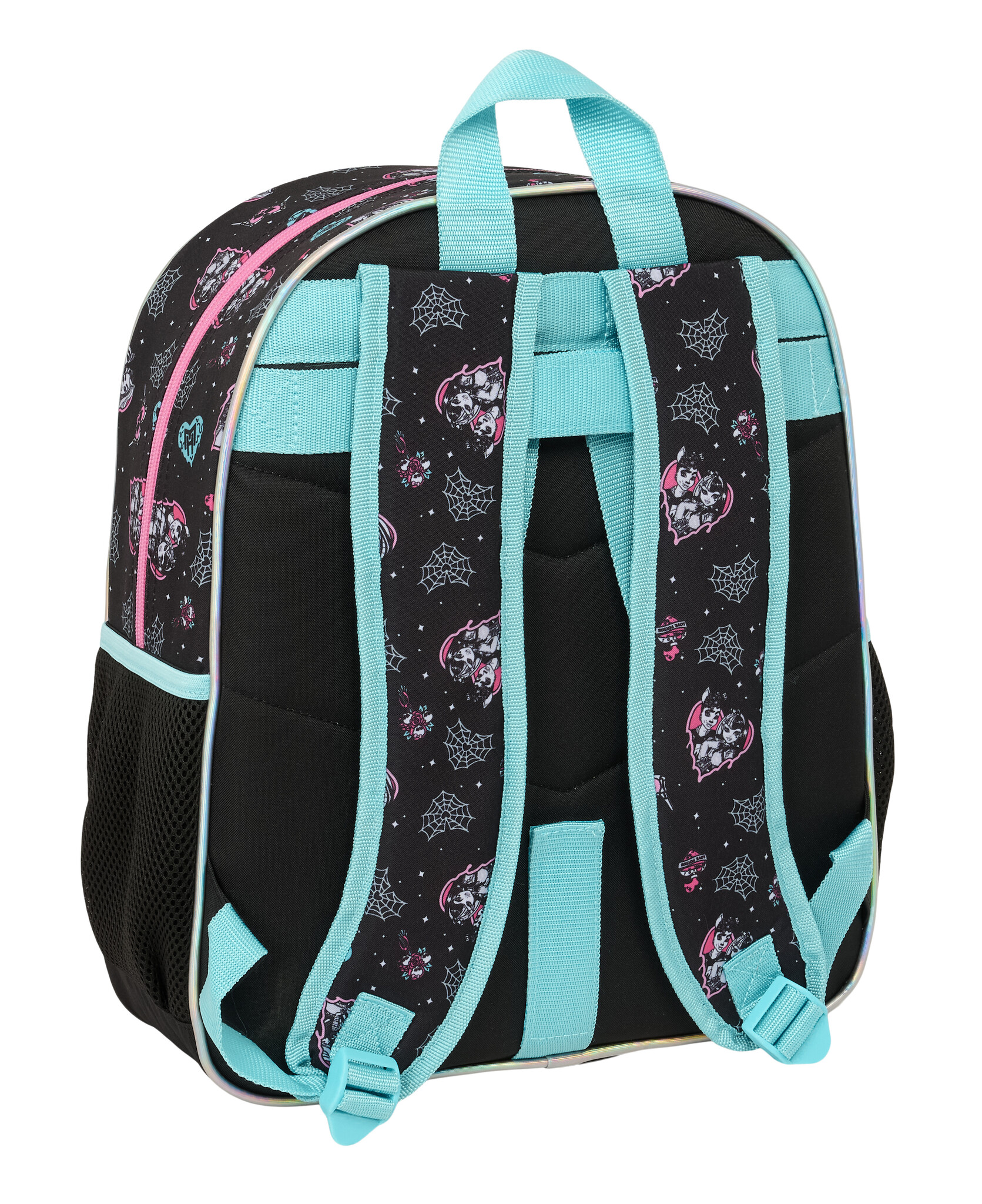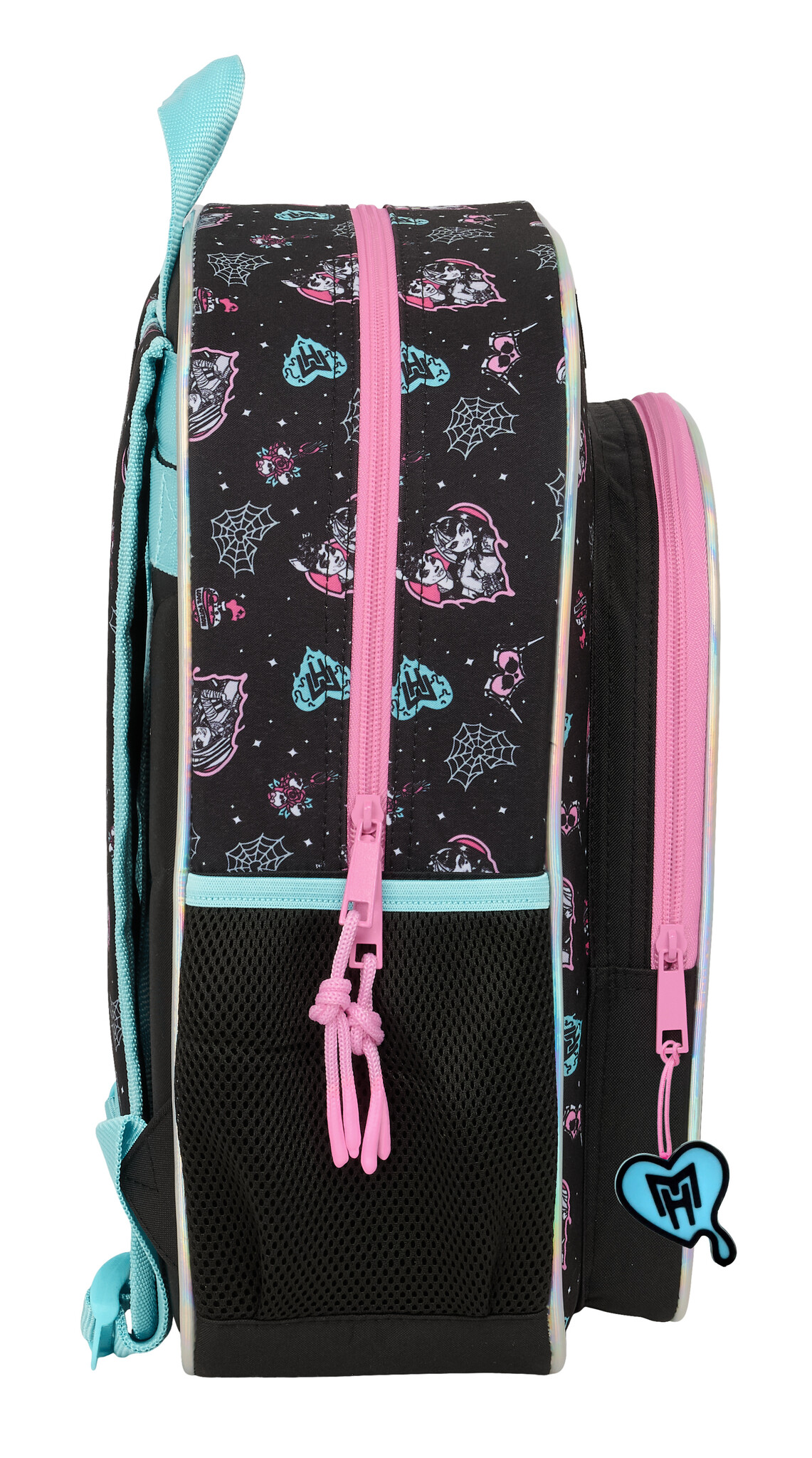 Ga stijlvol op pad met deze opvallende Monster High rugtas! De zwarte tas is versierd met een neonkleurige afbeelding van vier populaire hoofdrolspeelsters uit de serie, waarin vriendschap, jezelf zijn en een beetje griezelige fun centraal staan.