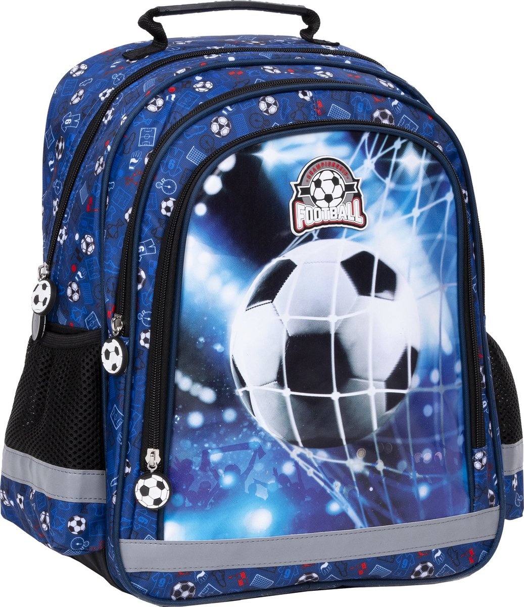 Voetbal Rugzak, Goal. Geweldige ruime rugtas met een stoere voetbalprint. Eet, slaap en adem jij voetbal? Dan mag deze tas niet ontbreken! Een ruime tas met maar liefst drie vakken en twee open zijvakken met mesh. Verder is de tas voorzien van comfortabele schouderbanden en heeft reflectiestrepen aan alle kanten. De tas heeft een mooie afwerking, zoals hangertjes in de vorm van een voetbal aan de ritsen. Ideaal voor school, een dag uit of sporten. Welke voetballiefhebber wordt hier nou niet blij van? Een leuk cadeau idee voor een verjaardag of de feestdagen!