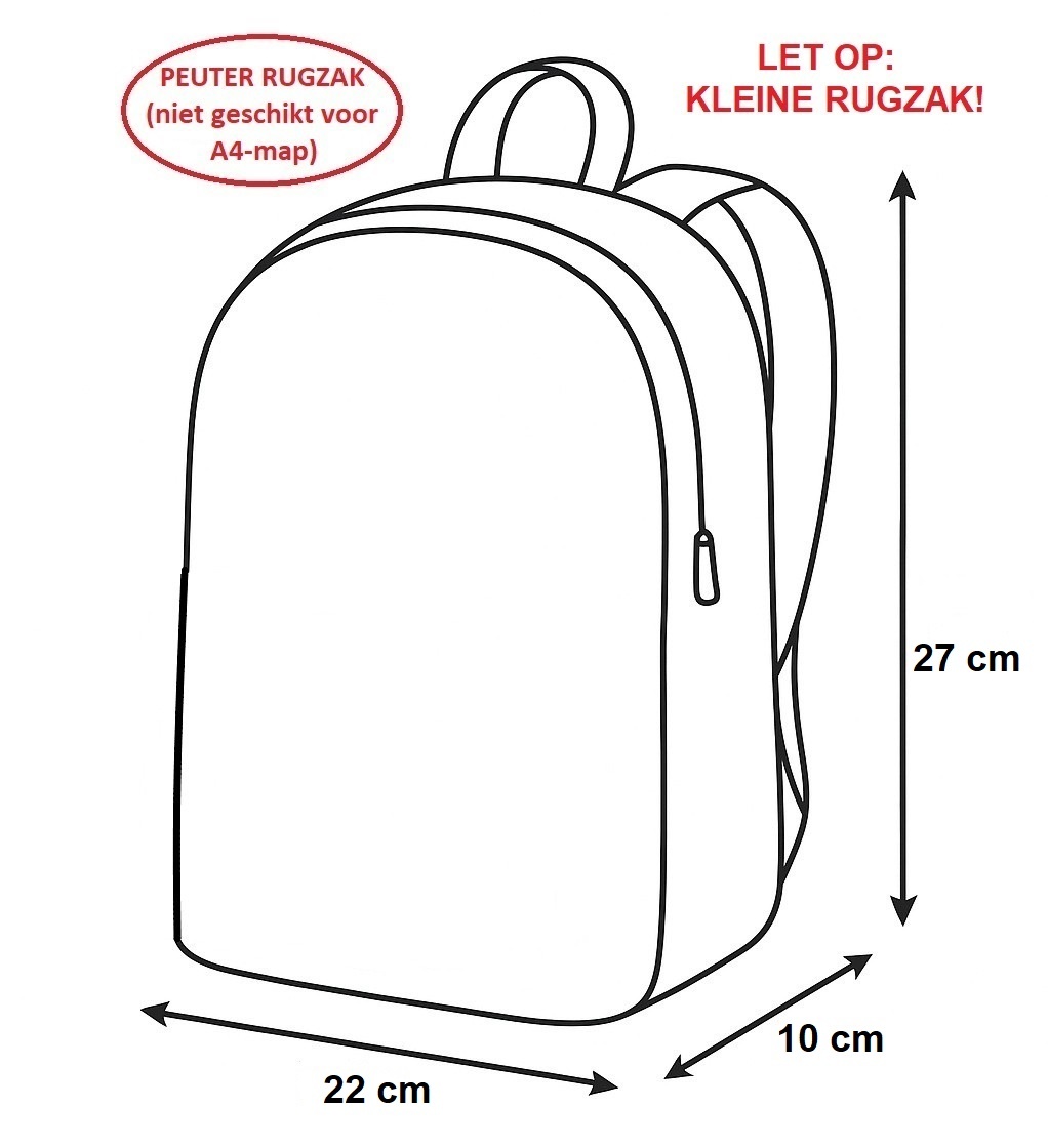 Controleer voor de aankoop de maat die u nodig heeft. Een handige tip is om de rug van uw kind op te meten en te vergelijken met de afmetingen van de rugzak. Let ook op dat tassen aan de bovenkant vaak smaller zijn dan aan de onderkant.