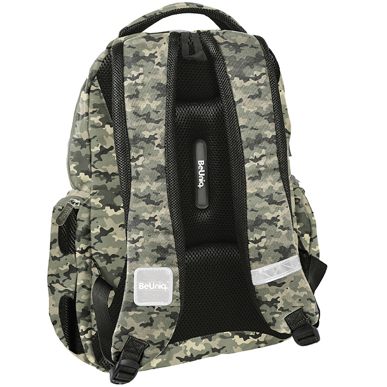 BeUniq Rugzak, Camouflage. Stoere rugtas met camouflage print. Daar mag je mee gezien worden! Of eigenlijk niet, natuurlijk... De tas beschikt over maar liefst 6 vakken met rits, waardoor al jouw spullen overzichtelijk en geordend blijven. Bepaalde vakken hebben ook nog een onderverdeling zoals een vakje voor een portemonnee en een vaste sleutelhanger. De rugzak heeft een verstevigde achterkant, waardoor mappen en boeken langer mooi blijven. Een ideale schooltas of gebruik de tas voor een dagje weg. Een leuk cadeau-idee voor het back-to-school seizoen, een verjaardag of de feestdagen!