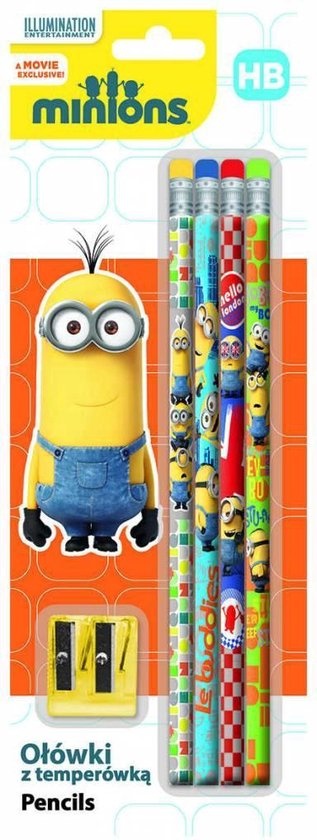 Minions set 4 schetspotloden met gummetjes en een puntenslijper